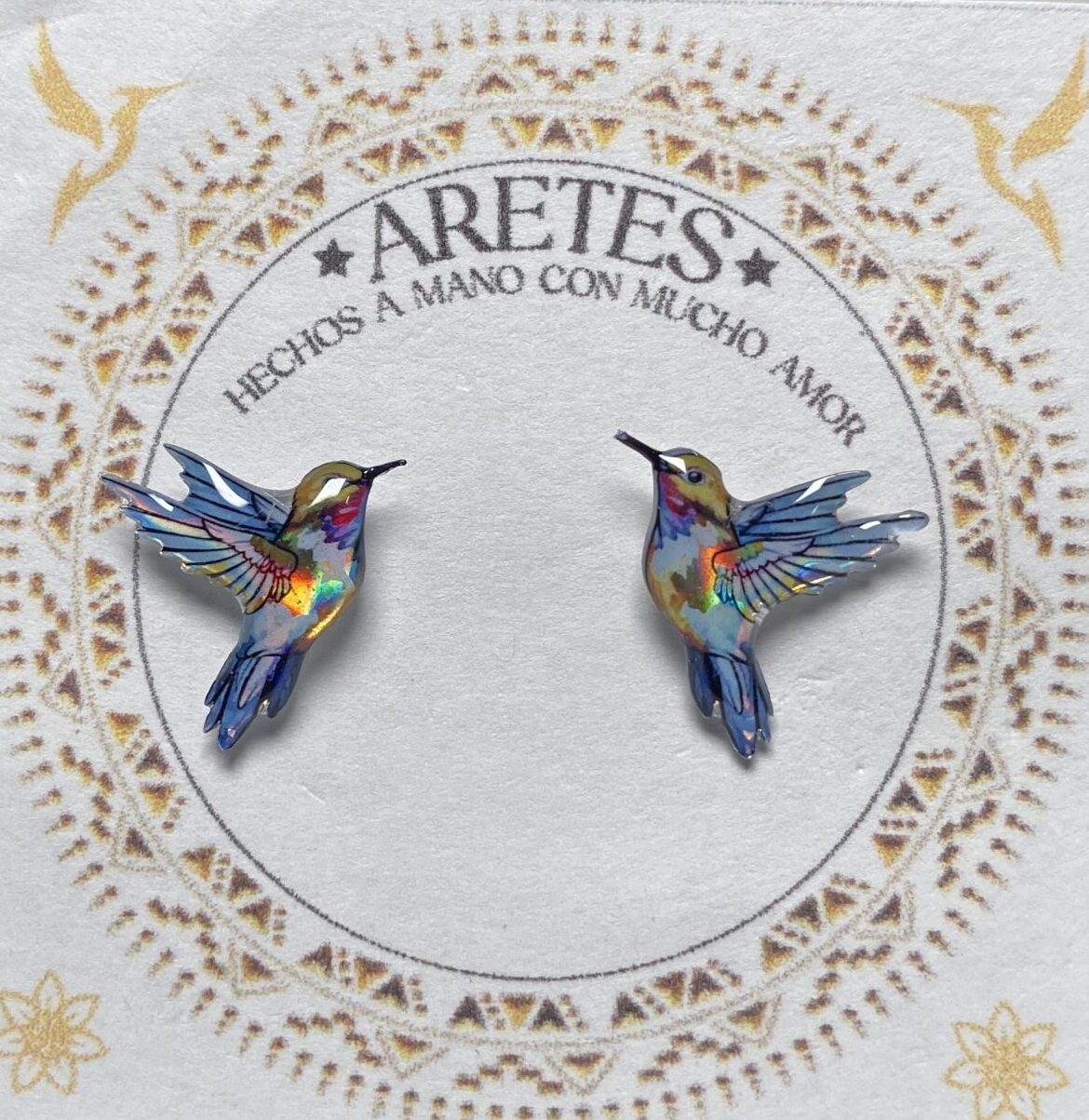 Aretes artesanales de Colibri Grisaceo Amarillo– Accesorios exclusivos inspirados en la fauna Colombiana.