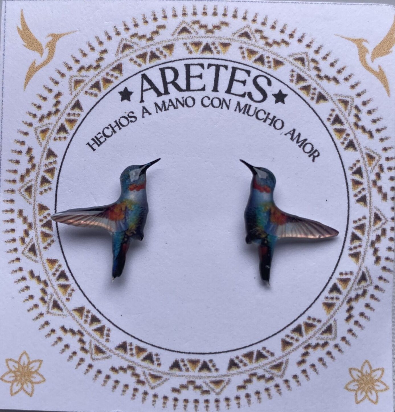 - Aretes artesanales de Colibri Neutro Tierra– Accesorios exclusivos inspirados en la fauna Colombiana., elaborados a mano con mucho amor