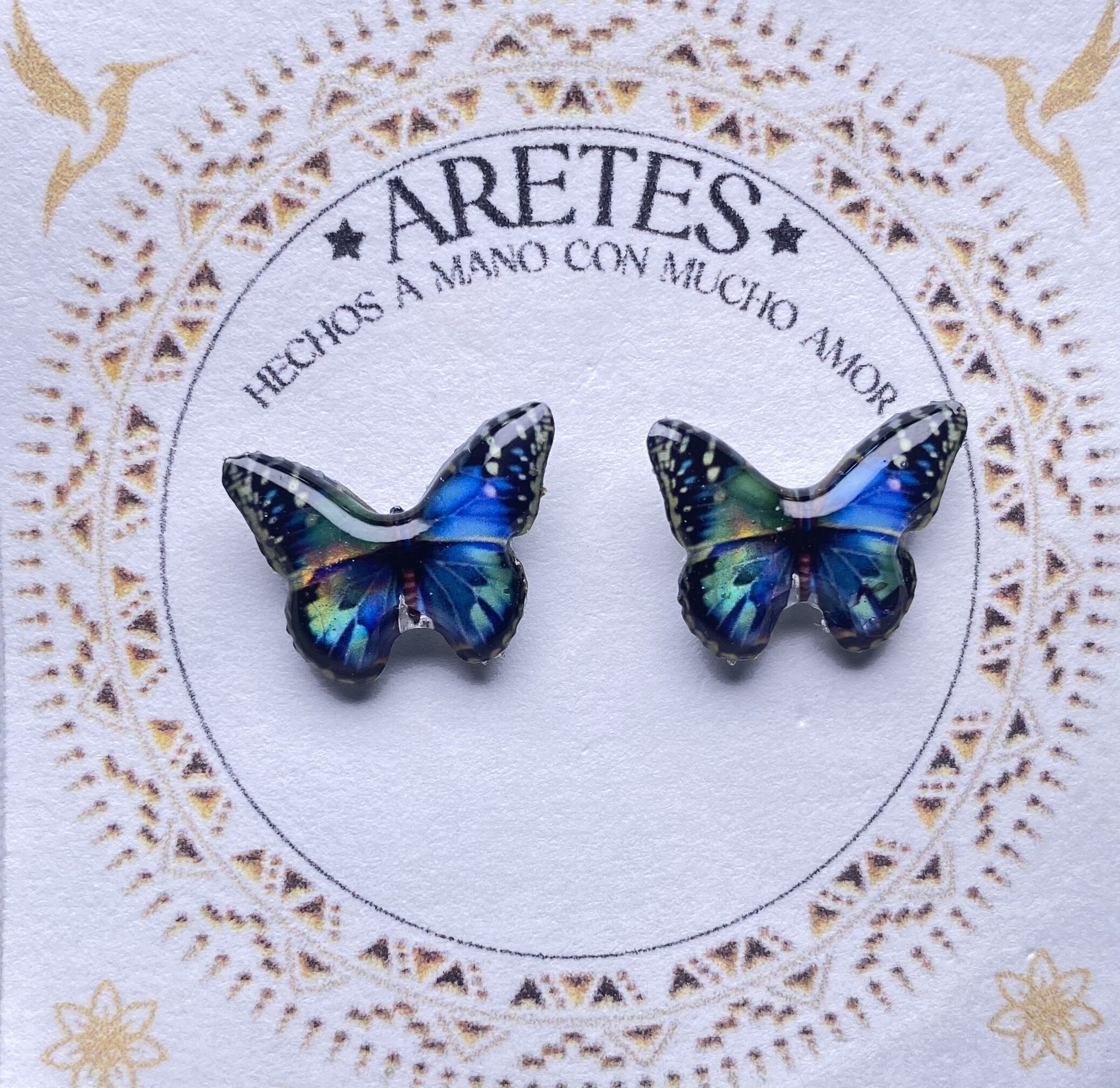 - Aretes artesanales de Mariposa Azul Verdoso Mar– Accesorios exclusivos inspirados en la fauna Colombiana., elaborados a mano con mucho amor