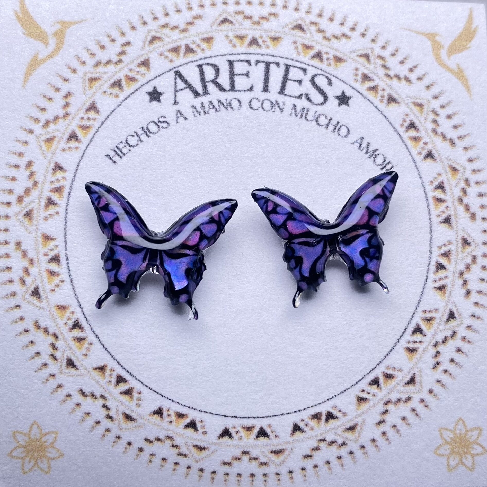 - Aretes artesanales de Mariposa Morpho Purpura– Accesorios exclusivos inspirados en la fauna Colombiana., elaborados a mano con mucho amor